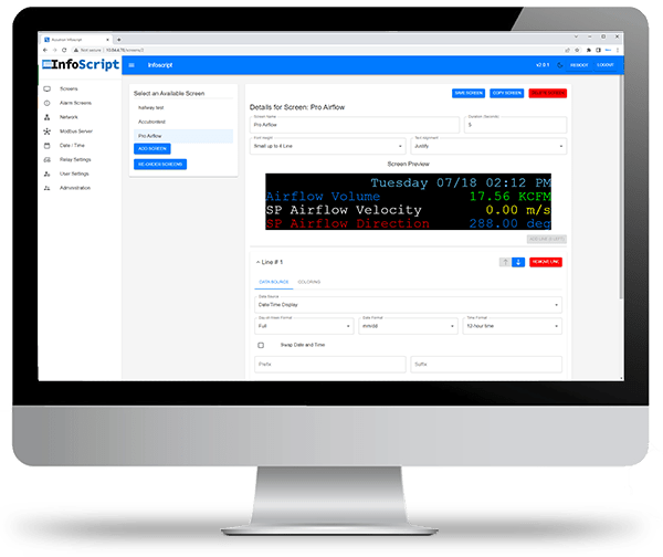 InfoScript is a Modbus ready, industrial LED display built tough to keep everyone informed. With endless customization and connectivity, the InfoScript connects to any/all Modbus TCP devices on the network to display live data.